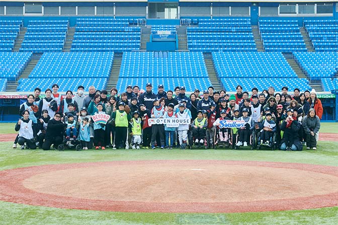 プロ野球「東京ヤクルトスワローズ」を、2016年から支援しております。野手・投手全員に「東京の家」プレゼントのチャンスがある「オープンハウス・ホームラン賞」、「オープンハウス・パーフェクト賞」などの賞を設け、2022年には、村上宗隆選手が日本選手シーズン本塁打記録を更新し、史上最年少での三冠王を獲得した偉業を称え、「3億円の東京の家」を贈呈いたしました。また、幼児から小学生が対象の「東京ヤクルトスワローズベースボールアカデミー」にも協賛しています。このほか様々なキャンペーン、イベントも行い、スワローズ、選手を応援するとともに、プロ野球の発展に貢献してまいります。